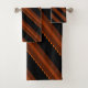 Il s'agit d'une combinaison de rayures d'angle rouge mystique et brun-selle vibrantes qui forment un motif abstrait sur une toile noire profonde, ce qui donne un design exceptionnel de la serviette de bain tonique.