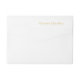 Script moderne Suite blanche et Faire-part de mariage or : Wraparound Adresse de retour Label avec les noms de mariée et mariée en or police de script moderne avec adresse en or police sans serif moderne sur arrière - plan blanc. Remarque : Les détails du papier sont simulés dans l'illustration. Il n'y aura pas de métal sur ce produit.