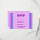 Carte RSVP rayée violette et turquoise. Personnalisez avec vos propres informations. Sélectionnez Personnaliser pour ajouter des détails sur le dos.
