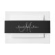 Cette bande de ventre personnalisée fait partie d'une élégante suite de faire-part de mariage en gris, noir et blanc appelée "A Black and White Affair" qui présente un design classique avec un gros accent monogramme en gris sur un arrière - plan noir. Idéal pour votre élégant mariage à thème noir et blanc. Personnalisé avec un seul nom initial et un nom de mariée et de chambre. Conception par Elke Clarke ©.