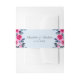 Design moderne faire-part de mariage ceinture avec roses d'aquarelle rose vif, feuillage bleu et gris sur un arrière - plan bleu clair.