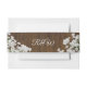 Bande de faire-part de mariage rustique chic, faite dans un look de bois foncé, avec des graphiques de fleurs d'haleine de bébé blanc. Personnalisez les monogrammes de la mariée et du marié en fonction de vos besoins. Jolie touche finale à notre Babys Breath Rustic Faire-part de mariage.