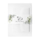 Le design se compose d'un bouquet de verdure aquarelle, d'eucalyptus et d'un succulent dans les tons bleu et vert poussiéreux. Le design présente également un monogramme élégant. La couleur arrière - plan est blanche pour compléter la suite d'invitations correspondante. Visualisez le lien de collection de cette page pour voir tous les éléments correspondants dans cette belle conception.