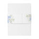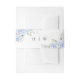 Classy hydrangea theem faire-part de mariage belly band, avec un design floral couleur bleu poussiéreux délicat et le monogramme du couple. Le design botanique doux encadre magnifiquement les initiales du couple, créant un look intemporel et sophistiqué.