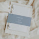 Ajoutez une touche de finition à vos envois mariages avec ces bandes de ventre d'invitation de mariage modernes et élégantes, avec du texte blanc sur un arrière - plan bleu poussiéreux.