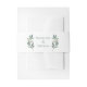 Un script de calligraphie verte tout simplement élégant avec deux feuilles d'eucalyptus aquarelle de chaque côté pour décorer cette belle bande de ventre mariage de automne minimaliste. Magnifique accessoire de faire-part de mariage moderne pour une occasion de jardin le soir.