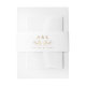 Cette invitation est l'incarnation de l'élégance raffinée, parfaite pour un mariage imprégné de sophistication classique. La bande de ventre, ornée d'une fausse crête monographique en feuille d'or, ajoute une touche luxueuse qui complète le design minimal blanc et or. Les teintes dorées apportent un luxe subtil, faisant de cette invitation un choix idéal pour les couples désirant une esthétique intemporelle et gracieuse pour leur journée spéciale.