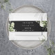 Un élégant groupe de faire-part de mariage florales de feuillage vert avec une typographie blanche moderne et chic sur un arrière - plan noir. Conçu par Thisisnotme©
