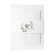 Ce groupe de faire-part de mariage feuille en monogramme vert tropical est parfait pour un mariage rustique. Le design présente de beaux feuilles verts peints à la main, ornant un cadre géométrique doré. Faites ces bandes de ventre en papier vous-même en incluant la dernière initiale de la mariée et du marié et la date du mariage.