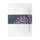 Un élégant carton d'invitation de mariage sur la plage présentant des coraux roses blush scintillants sur un fond bleu de minuit accentué de calligraphie moderne. Envoyez-moi un message si vous souhaitez le design dans une palette de couleurs différente. Conception originale et illustrations de Kitty Pie Prints.