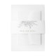 Ajoutez une belle touche finale à vos invitations de mariage avec une bande de ventre pour emballer vos cartes de boîtier. Doté d'un bouquet floral à débordement dessiné à la main, associé à une typographie verte et chic. Le contraste entre le noir floral et le vert ajoute un peu de glamour.