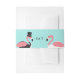 Un groupe de ventre mariage flamand avec une mariée flamingo et un marié flamand sur un arrière - plan turquoise. Ajoutez simplement vos initiales, ajoutez cette bande de ventre à votre panier et profitez de votre mariage flamand. Flamant rose Monogramme Faire-part de mariage Belly Band Jours fériés Design | ©Melissa Patton - Concepteur/Illustrateur
