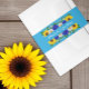 Ciel bleu d'été avec tournesols jaunes dorés, marguerites et assortiment de fleurs sauvages avec verdure botanique