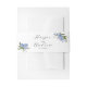 Elégante bande ventre d'invitation de mariage avec aquarelle illustration de fleurs de pivoines bleues avec verdure.