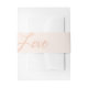 Le mot élégant "amour" est grand et légèrement découpé pour une conception élégante lunatique de bellyband. Complimente le notre faire-part de mariage rougissent et de bronzes réglé.