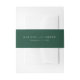Élégant groupe de ventre d'invitation de mariage avec vos noms séparés par "et" dans un script de calligraphie blanc sur un arrière - plan vert foncé. Personnalisez les bandes du ventre mariage moderne avec votre date de mariage en italique.