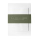 Élégant groupe de ventre d'invitation de mariage avec vos noms séparés par "et" dans un script de calligraphie blanc sur un arrière - plan vert olive. Personnalisez les bandes du ventre mariage moderne avec votre date de mariage en italique.