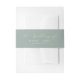 Cette délicate bande de ventre de faire-part de mariage vert sauge est parfaite pour un mariage de printemps ou d'été. Le design minimaliste romantique présente une calligraphie blanche élégante sur un arrière - plan vert poussiéreux à l'allure simple et propre. Personnalisez ces bandes de ventre en papier avec les noms de la mariée et du marié, et la date mariage.