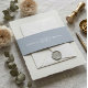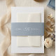 Elevate your wedding invitations with this elegant dusty blue belly band. Featuring modern, minimalist typography, it beautifully displays the names 'Gabrielle' and 'Michael' with a chic '&' symbol, creating a sophisticated first impression for your guests. This unique belly band adds a touch of contemporary style to your wedding stationery, ensuring your invitations are presented with polished charm and a hint of personalized flair. It's the perfect accessory to bundle your invitations and enclosures, offering a secure and stylish way to keep everything together.