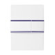 La conception présente les initiales de la mariée et du marié dans une impression bleu marine. L'image d'une croix est représentée entre les initiales. La phrase personnalisable "Unis dans le Christ" est affichée en haut en forme d'arc. Le design est encadré par des bordures élégantes bleu marine et blanches. Conçu pour se coordonner avec la suite de mariage Monogramme catholique intemporel.