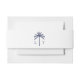 Améliorez votre suite de faire-part de mariage avec ces élégantes bandes de ventre monogramme avec un palmier avec des initiales personnalisées de mariée et de mariée en bleu marine profond sur blanc. Le design épuré et minimaliste est une touche finale parfaite pour les mariages de destination tropicale et de plage.