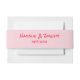 A very elegant and unique hand written whimsical wedding belly band. That matches the whole wedding hand written suite theme vibe. It has bright vivid red calligraphy script with colorful blush pink background. With hand written names and date above it.