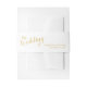 Suite de Faire-part de mariage moderne en or et blanc : Faire-part de mariage Belly Band avec titre en or de police de script moderne avec les noms de mariée et de marié et date en or moderne sans serif police sur arrière - plan blanc. Remarque : Les détails du papier sont simulés dans l'illustration. Il n'y aura pas de métal sur ce produit.