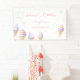 Bannière d'anniversaire avec une douce illustration de crème glacée aux couleurs pastel.