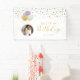 Cette jolie bannière d'anniversaire comporte des confettis d'or et de violet et des ballons avec un modèle photo. Vous pouvez customiser le texte et remplacer la photo. Décor moderne parfait pour fêter un anniversaire de fille. Les invitations et les fournitures de fête correspondants sont disponibles dans ma boutique BaraBomDesign.