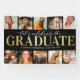 Bannière de la fête de graduation Black & Gold avec un collage photo de 10 du diplômé, et un modèle de célébration simple et élégant qui est facile à personnaliser.