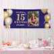 Bannière photo 15th Birthday Party Navy Blue and Gold Ballons. Pour plus de personnalisation, cliquez sur le bouton "Customiser" et utilisez notre outil de conception pour modifier ce modèle.