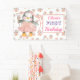 Célébrez le 1er anniversaire de votre bébé en style avec cette belle bannière de premier anniversaire de pingouin bébé, avec une ballerine de pingouin couleur aquarelle dans un tutu rose qui tournoie un ruban rose avec un arrière - plan à motif ballerine. Personnalisez avec le nom de l'enfant et son âge d'anniversaire. C'est génial de décorer ce mur de fête. Idéal pour le premier anniversaire d'une petite fille, mais peut être adapté à tout âge. Police en rose et violet coloré. Objets Correspondance Party disponibles dans Suzicadeaux.