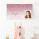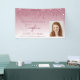 Célébrez sa graduation du lycée ou de l'université avec cette bannière photo chic et glamour, avec une frise brillante bordeaux fausse parties scintillant et arrière - plan bordeaux sombre. Remplacez facilement l'image de l'échantillon par une photo du diplômé. Personnalisez-le avec son nom en écriture manuscrite bordeaux, avec le nom de l'année de classe et le nom de l'école ci-dessous en police sans serif.