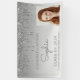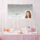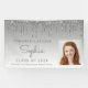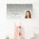 Célébrez sa graduation du lycée ou de l'université avec cette bannière photo chic et glamour, avec une bordure brillante en fausse parties scintillant argent et ombre arrière - plan. Remplacez facilement l'image de l'échantillon par une photo du diplômé. Personnalisez-le avec son nom en écriture manuscrite grise, avec le nom de l'année de classe et le nom de l'école ci-dessous en sans serif font.