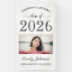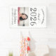 Élégante et moderne coutume "Félicitations" la bannière de la fête de graduation affiche un schéma classique en noir et blanc avec une photo du diplômé. Personnalisez avec le nom et l'école du diplômé. Notez que les couleurs de conception peuvent être customisées pour être coordonnées avec d'autres couleurs de fête ou d'école.