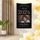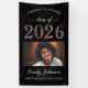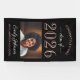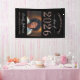 Sur mesure, le panneau de bannière de la fête de remise des diplômes "Félicitations" présente un schéma classique en or noir, blanc et rose vif / rose avec une photo du diplômé. Personnalisez avec le nom et l'école du diplômé. Les couleurs peuvent être customisées pour être coordonnées avec d'autres couleurs de fête ou d'école.