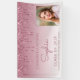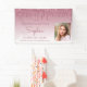 Célébrez sa graduation du lycée ou de l'université avec cette bannière photo chic et glamour, avec une frise brillante bordeaux fausse parties scintillant et arrière - plan bordeaux sombre. Remplacez facilement l'image de l'échantillon par une photo du diplômé. Personnalisez-le avec son nom en écriture manuscrite bordeaux, avec le nom de l'année de classe et le nom de l'école ci-dessous en police sans serif.