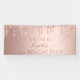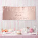 Une bannière pour une fête de 21e anniversaire, girly et glamour. Un arrière - plan métallique à l'aspect faux rose d'or avec un élégant faux or rose, gouttes de parties scintillant rose, look goutte à goutte de peinture. Le texte : Bienvenue à, et un nom écrit en or rose foncé avec un grand script de style écrit main moderne.