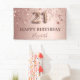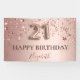 Elégant, classique, glamour et girly pour une fête de 21ème anniversaire. or rose et rose vif, arrière - plan dégradé. Décoré d'or rose et d'étoiles roses. Personnalisez et ajoutez un nom. Avec le texte : Joyeux anniversaire. Le nom est écrit avec un script de style moderne en lettres de couleur rose foncé. Le numéro 21 est écrit avec une police de style ballon. Peut être utilisé comme bannière de bienvenue ou comme décoration murale de fête.