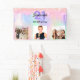Pour un 21ème anniversaire en tant que bannière de bienvenue de fête ou décoration murale. Un collage de 3 de vos photos d'elle-même amis, famille, intérêts ou animaux de compagnie. Personnalisez et ajoutez son nom, son âge de 21 ans et une date. Date de naissance ou date de la fête d'anniversaire. Un arc-en-ciel branché, arrière - plan holographique en violet, rose et vert menthe. Décoré avec des gouttes, la peinture goutte à goutte look. Texte de couleur violet et noire.