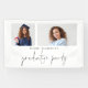 2 Photo Script Bienvenue à la fête de fin d'études. Style moderne pour saluer vos invités à votre célébration de fin d'études ! Remplacez simplement les deux images exemples par les vôtres. La fête de fin d'études est dans un script de set stylé et personnalisez facilement le reste du texte.