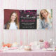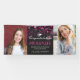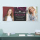 Celebrate your graduate with a graduation banner in their honor. Personalize it by uploading two photos of the graduate, and by writing their name, degree, the school, and the year between the photos in white and hot pink text against a dark backdrop full of bokeh in shades of hot pink and fuchsia.