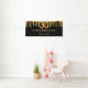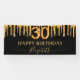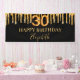 Elégant, classique, glamour et girly pour une fête de 30ème anniversaire. Un arrière - plan noir chic. Décoré avec des gouttes de parties scintillant en faux or, la peinture goutte à goutte. Personnalisez et ajoutez un nom. Avec le texte : Joyeux anniversaire plus le nom des filles d'anniversaire. Le texte est écrit avec un script de style à la main de couleur dorée moderne. Le numéro 30 est écrit avec une police de style ballon. Peut être utilisé comme bannière de bienvenue ou comme décoration murale de fête.