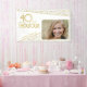40 et Fabulous Gold Parties scintillant Photo 40th Birthday Party Banner. Cadre d'anniversaire moderne avec typographie branchée et taches de parties scintillant faux or. Le design a une photo et un nom personnalisés. Faites-lui une bannière personnalisée pour la fête du 40e anniversaire.