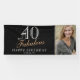 40 et Fabulous Modern Black 40th Birthday Photo Banner. Grand signe pour la fête du 40e anniversaire avec une photo personnalisée, une citation inspirante et drôle 40 et fabuleux. L'arrière - plan est noir et le texte est blanc et doré. Personnalisez le panneau avec votre photo, votre nom et le numéro d'âge, et faites votre propre bannière de fête d'anniversaire amusante. C'est super pour la fête d'anniversaire d'une femme.