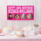 Banderole de 40e anniversaire de quatre modèles photo, en gras, rose chaud et blanc. Personnalisez cette bannière d'anniversaire avec les détails de votre fête d'anniversaire, et quatre photos différentes de votre fille d'anniversaire dans les cercles photo idéal pour une photo de chaque décennie. D'autres années couleurs et articles correspondants sont disponibles et peuvent être créés sur demande. © Design original par Sarah Trett pour www.mylittleeden.com sur Zazzle.