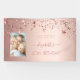 Une bannière pour une fête de 40e anniversaire, fillette et glamour. Un faux rose or à l'apparence métallique arrière - plan avec des étoiles brillantes et brillantes gouttes d'eau. Personnalisez et ajoutez votre propre photo, un nom écrit en or rose foncé avec un grand script de style moderne écrit à la main avec des swashes. Pour que les swashes ne suppriment que le nom de l'échantillon, laissez les espaces ou émoticônes devant et après le nom. Modèles pour une date et l'âge 40. Idéal à la fois comme bannière de bienvenue ou comme décor de fête.