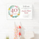 Cette bannière pour la célébration du 40e anniversaire du mariage présente une délicate couronne de verdure fleurie faite de fleurs sauvages, de plantes et de papillons. Banner peut être facilement personnalisé avec vos informations spéciales ruby anniversaire dans un texte élégant. Les fournitures et la papeterie de la partie correspondante sont disponibles dans la collection "40e anniversaire de Mariage Invitation et fournitures".