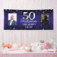 Banderole bleu élégant à 50e anniversaire avec Happy Birthday réglable et Nom personnalisé Texte. Choisissez votre photo préférée et téléchargez! Faux foil confetti argent et 50 nombre.