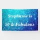 Conçu pour le 50 et fabuleux anniversaire avec turquoise bleu & blanc arrière - plan parties scintillant! Personnalisez en modifiant le modèle de texte pour le nom comme vous le souhaitez.